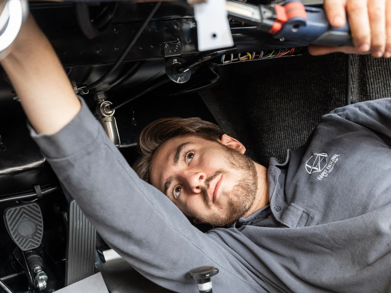 Funktionalität trifft auf Faszination: Wir sorgen dafür, dass Technik und Elektrik Ihres historischen Fahrzeuges nicht nur perfekt funktionieren, sondern auch sicher sind. Vom Motor und Getriebe bis zu Fahrwerk, Achsen, Federung und Lenkung überarbeiten wir jedes Detail. Ebenso setzen wir Kabelbaum, Licht und Instrumente sorgfältig für Sie instand – funktional und maximal ästhetisch. Dabei haben wir mehr als die einzelnen Teile im Blick: Unser Maßstab sind die herausragenden Fahreigenschaften, die schon die frühen Modelle der Hersteller Porsche, Ferrari, Maserati etc. zu Legenden machten. Sie als Fahrer verdienen nicht weniger als Perfektion.